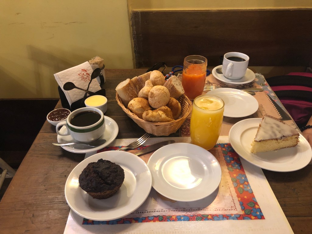 Un des meilleurs petit-dej que j’ai jamais mangé ! D’abord, le lieu est très cosy et chaleureux, plutôt sobre dans sa devanture, situé dans une petite rue de Leblon près du Jardin Botanique. Sur place, tous les bons petits mets brésiliens sont préparés, entre de grosses parts de gateaux, des pãos de queijo, et des jus frais. La carte offre entre autre des omelettes, des sandwichs et des gateaux mais aussi un menu spécial petit-déjeuner très copieux qui comprend une panière de viennoiseries faites maison, un gateau au choix, du café, du jus… Un gros coup de coeur !